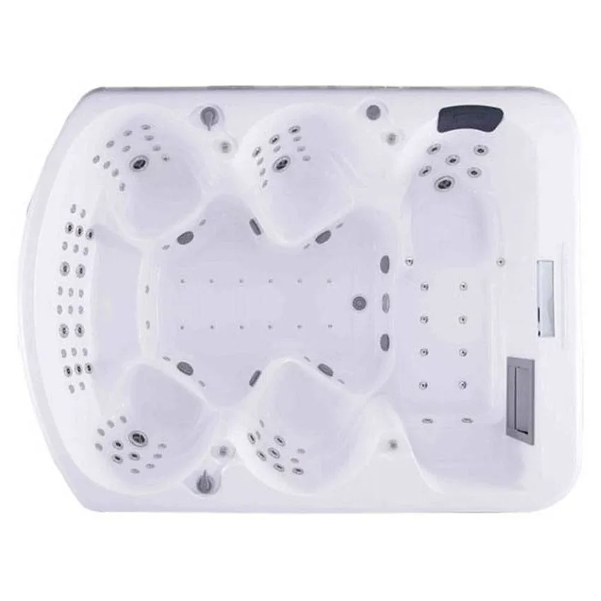 Чаша бассейна изготовлена из прочного и стильного китайского белого акрила, который не только привлекает внимание своим блеском, но и обеспечивает долговечность. Этот материал устойчив к внешним воздействиям, что гарантирует долгий срок службы вашего спа-бассейна.