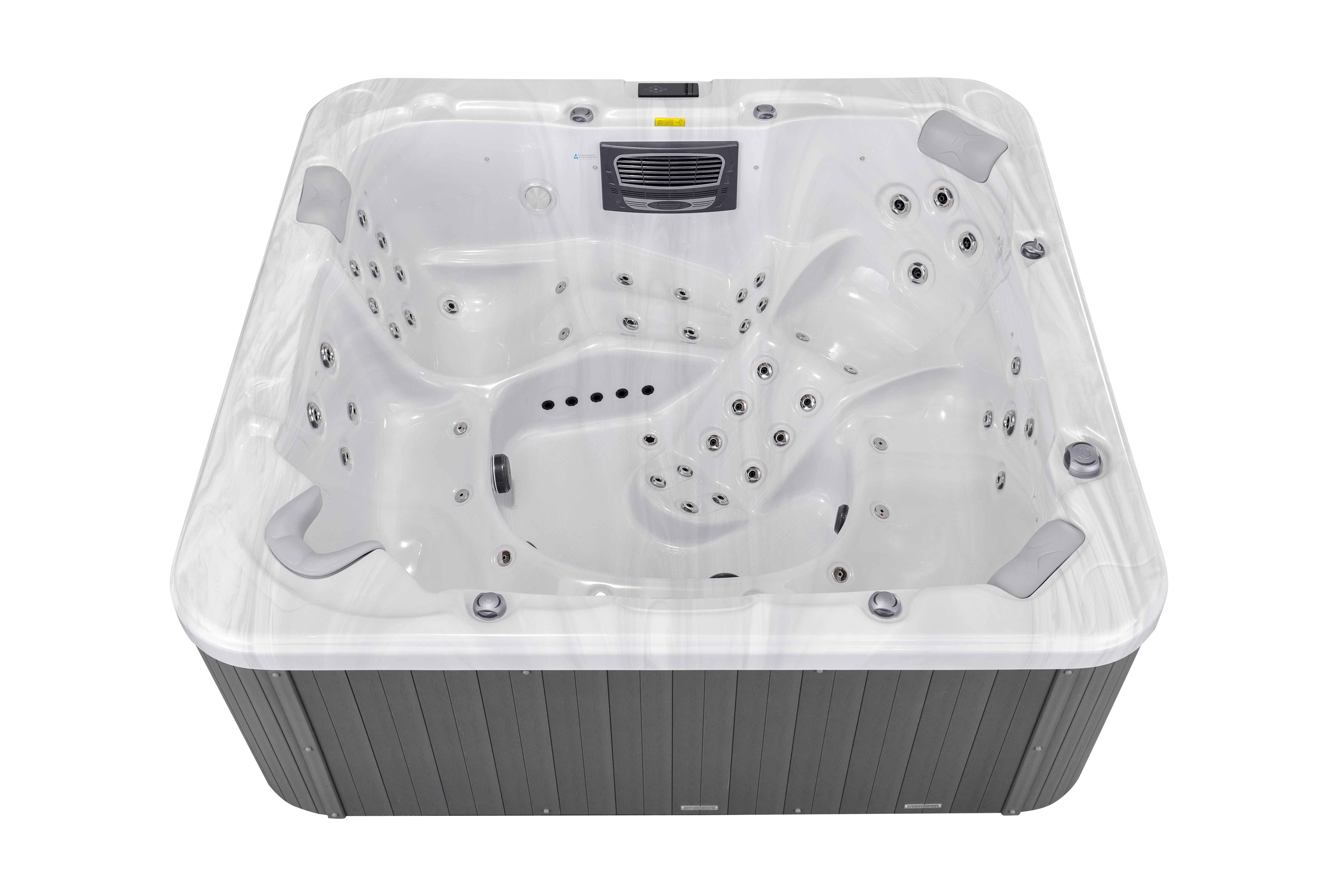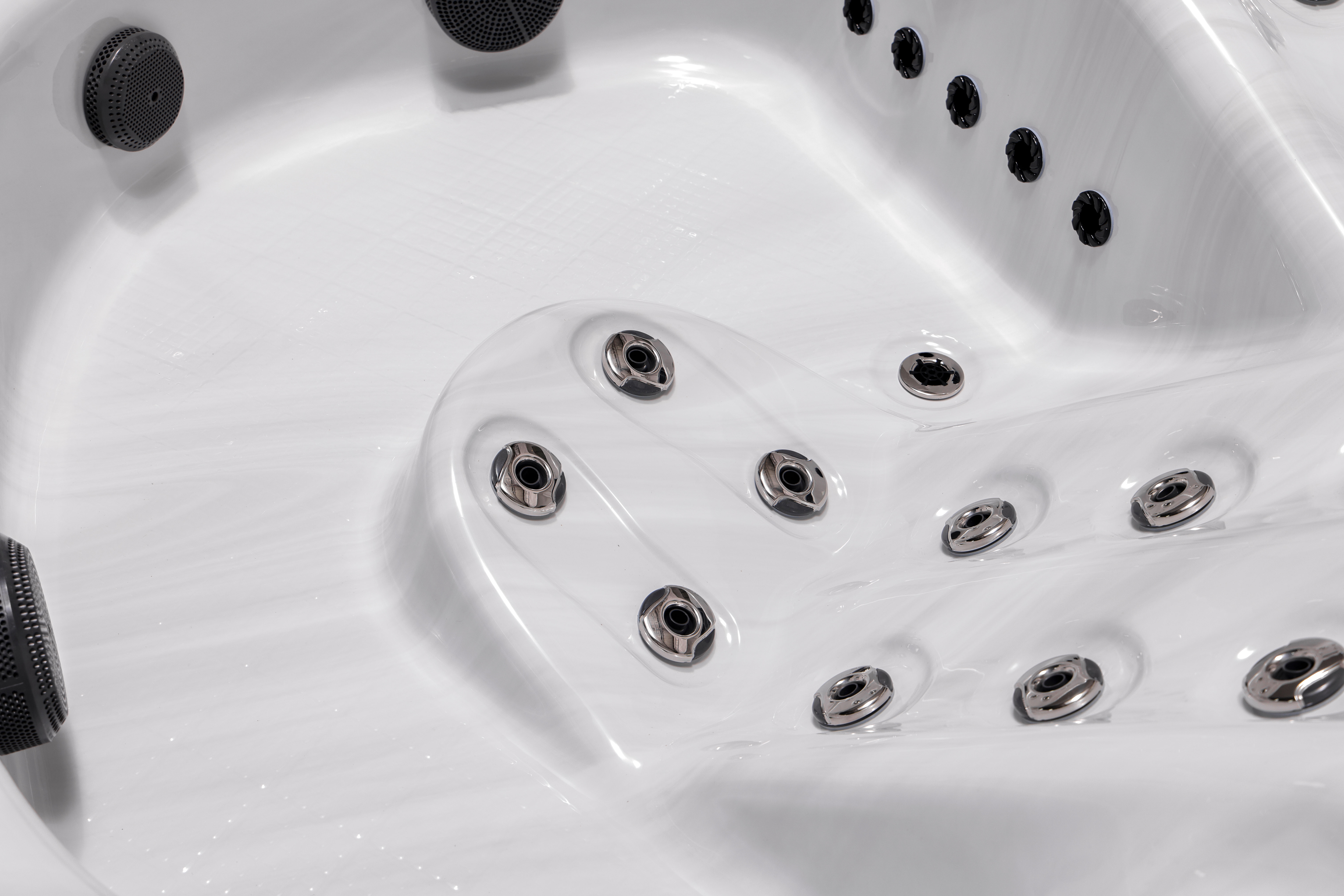 Meyli оснащен 66 воздушно-водяными форсунками и 12 дополнительными аэро-форсунками (опционально), которые создают невероятный массажный эффект для полного расслабления всех групп мышц. Просторная эргономичная конструкция с восемью посадочными местами и четырьмя подголовниками обеспечивает максимальный комфорт для большой компании.