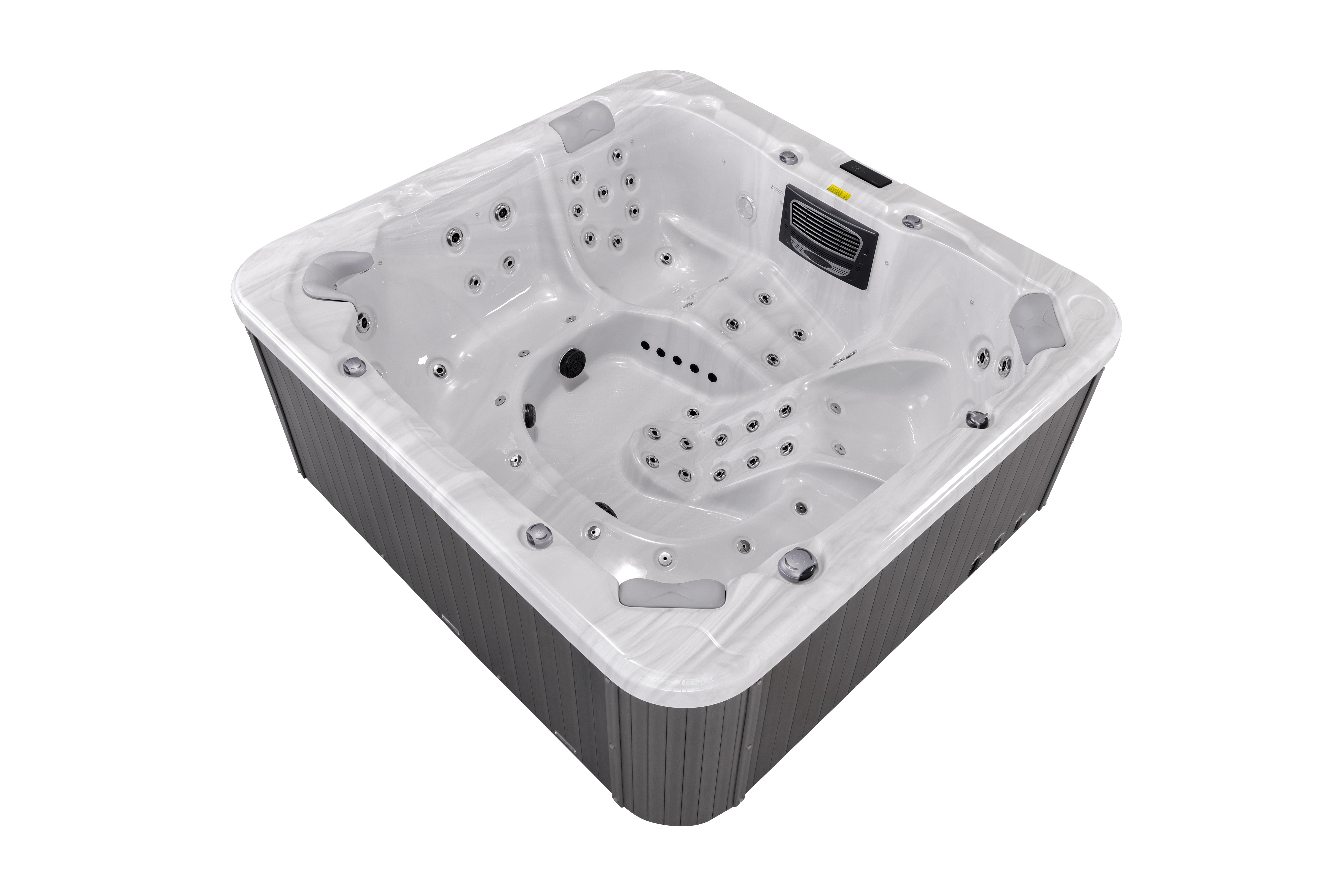 Комбинация нагревателя 3 кВт и двух водяных насосов по 2,2 кВт каждый обеспечивает быстрый нагрев и интенсивный массаж, оставаясь при этом экономичным в эксплуатации.
