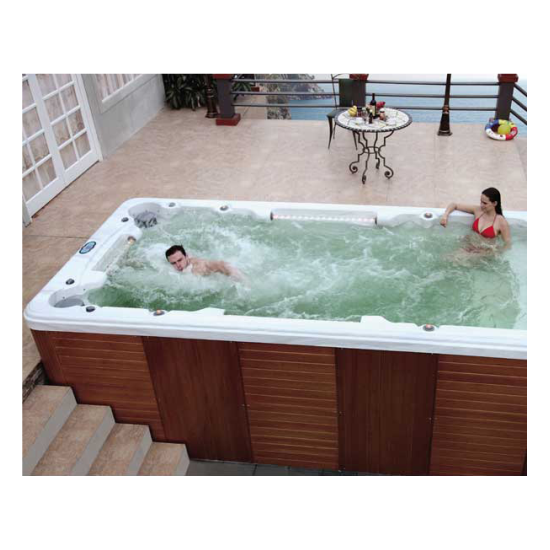 Профессиональный плавательный спа-бассейн с тремя форсунками противотока, на каждую из которых приходится по одному мощному насосу в 3 лс. Силу потока воды и направление любой плавательной форсунки можно настроить индивидуально, что важно как для любителя, так и для профессионального пловца. Дополнительно по обе стороны бассейна расположены по 1 поручню с подсветкой для различных упражнений. В спа-зоне с комфортом разместятся 4 человека, на трех сидячих и одном лежачем месте.