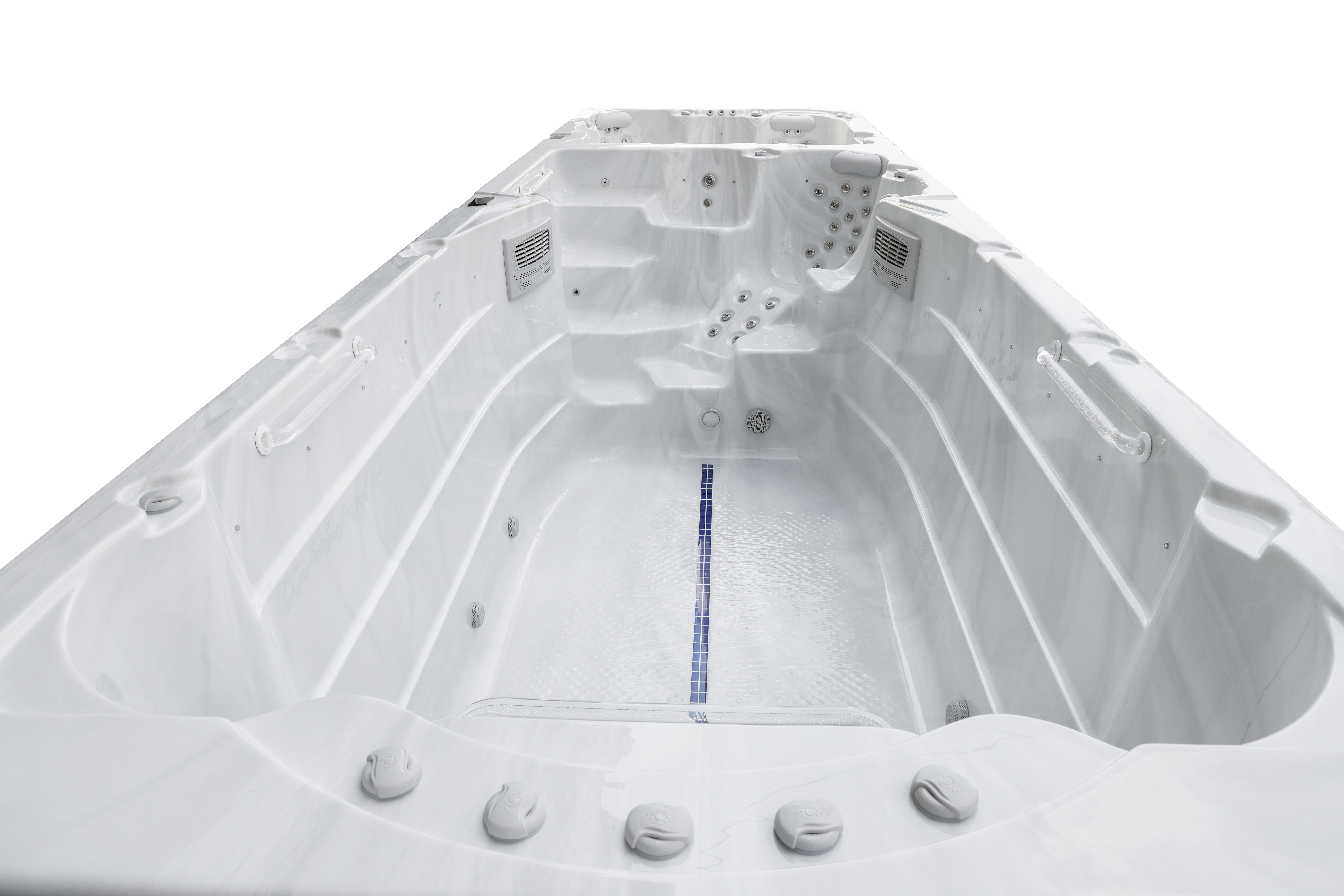 Это полностью готовое решение для тренировок и отдыха. Мощную систему гидромассажа, создающую невероятный комфорт в спа-зоне, обеспечивают 101 форсунка. Эффективный массаж и мощные водяные потоки создаются четырьмя производительными насосами: два насоса мощностью 2,2 кВт для спа-зоны, и два мощных насоса: 2,2 кВт и 2,9 кВт для плавательной зоны, что позволяет создать идеальное встречное течение для плавания.